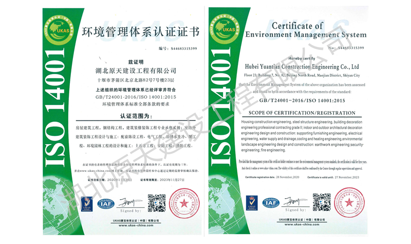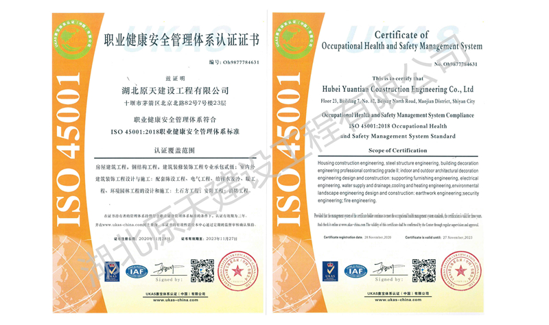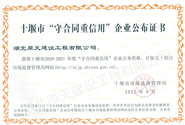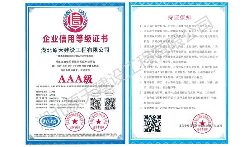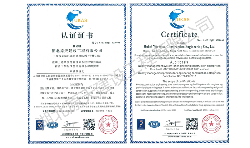 湖北原天建设工程有限公司成立于2000年5月18日,前身是湖北能园建筑装饰工程有限公司,(名称变更时间是2017.7.24)。注册资金1000万元(人民币),并于2011年8月通过GB/T 19001-2008-ISO 9001:2008,GB/T 50430-2007质量管理体系认证。本公司拥有建筑工程施工总承包贰级、钢结构工程专业承包贰级、消防设施工程专业承包贰级、防水防腐保温工程专业承包贰级、建筑装修装饰工程专业承包贰级、建筑幕墙工程专业承包贰级资质,是湖北省建筑装饰协会理事单位,十堰市建筑装饰协会副会长单位。公司实力雄厚,技术力量强,反应迅速,并有一支庞大的技术精湛、作风过硬的施工队伍。历年来,由于公司合法经营,成绩斐然,公司总经理游悟能先生被十堰市吸收为市政协委员、中国民主建国会会员、并当选为市建筑装饰协会副会长。2007年度公司总经理游悟能先生被湖北省建筑装饰协会评定为省级优秀建筑装饰企业经理。公司自2002年度起连年被市政府授予“守合同重信用企业”,自2004年度起连年被评为十堰市优秀建筑装饰企业。